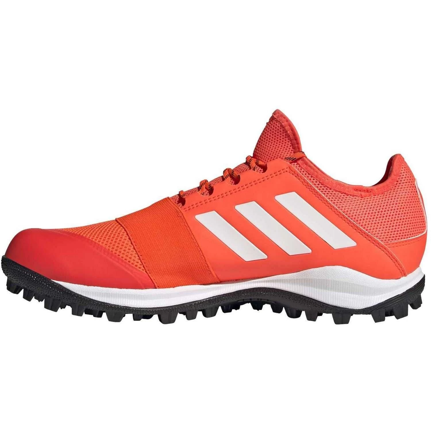 Met de adidas Divox 1.9S FZ5341 hockeyschoenen creëert u een opvallende look. Deze adidas hockeyschoenen hebben namelijk een felrode kleur. De sportschoenen zijn uitgevoerd met een duurzame TPU buitenzool. Hierdoor kunt u lang gebruik maken van uw nieuwe sportschoenen. De omsluitende pasvorm houdt uw voeten stabiel tijdens het spelen.