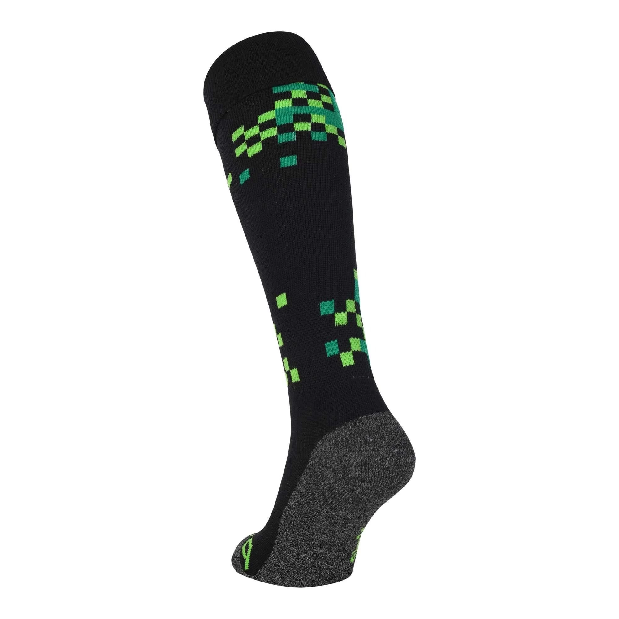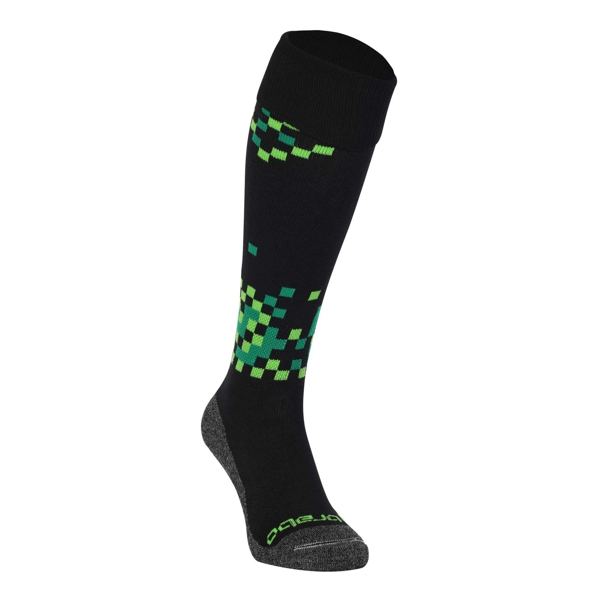 De Brabo Wall hockeysokken black green hebben een leuke groene print en bieden een uitstekend comfort tijdens de training. De Brabo sportsokken voelen zacht aan, zijn voorzien van versteviging aan de onderkant en gaan makkelijk over de scheenbeschermers heen.