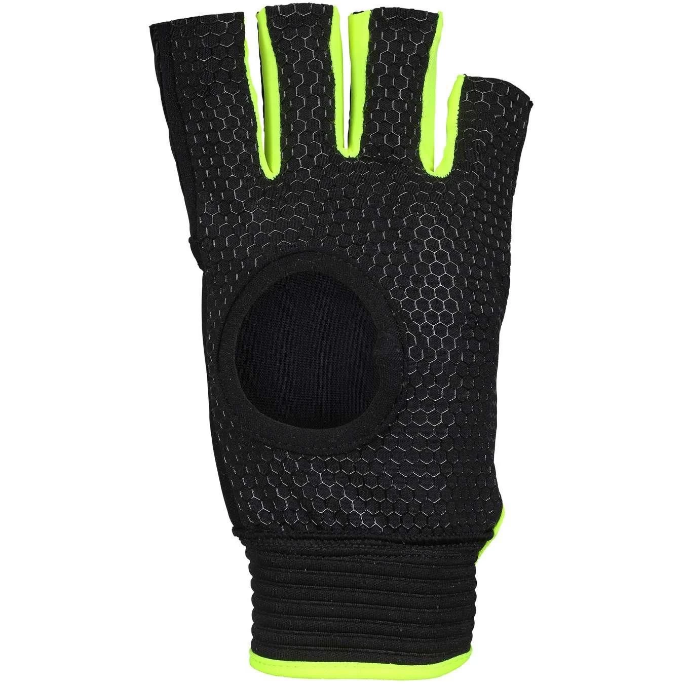 De Grays Anatomic Pro hockeyhandschoen in de kleur black fluo yellow is voorzien van een voorgevormd knokkelpantser. Deze Grays hockeyhandschoen bevat een schuimvulling waardoor deze een zeer goede schokbestendigheid heeft. De handschoen heeft een nauwsluitende pasvorm van lycra waardoor de hockeystick comfortabel in uw handen ligt en hanteerbaar is. De helft van uw vingers zijn bedekt met stof en door de elastische band met klittenbandsluiting kunt u zelf de pasvorm bepalen.