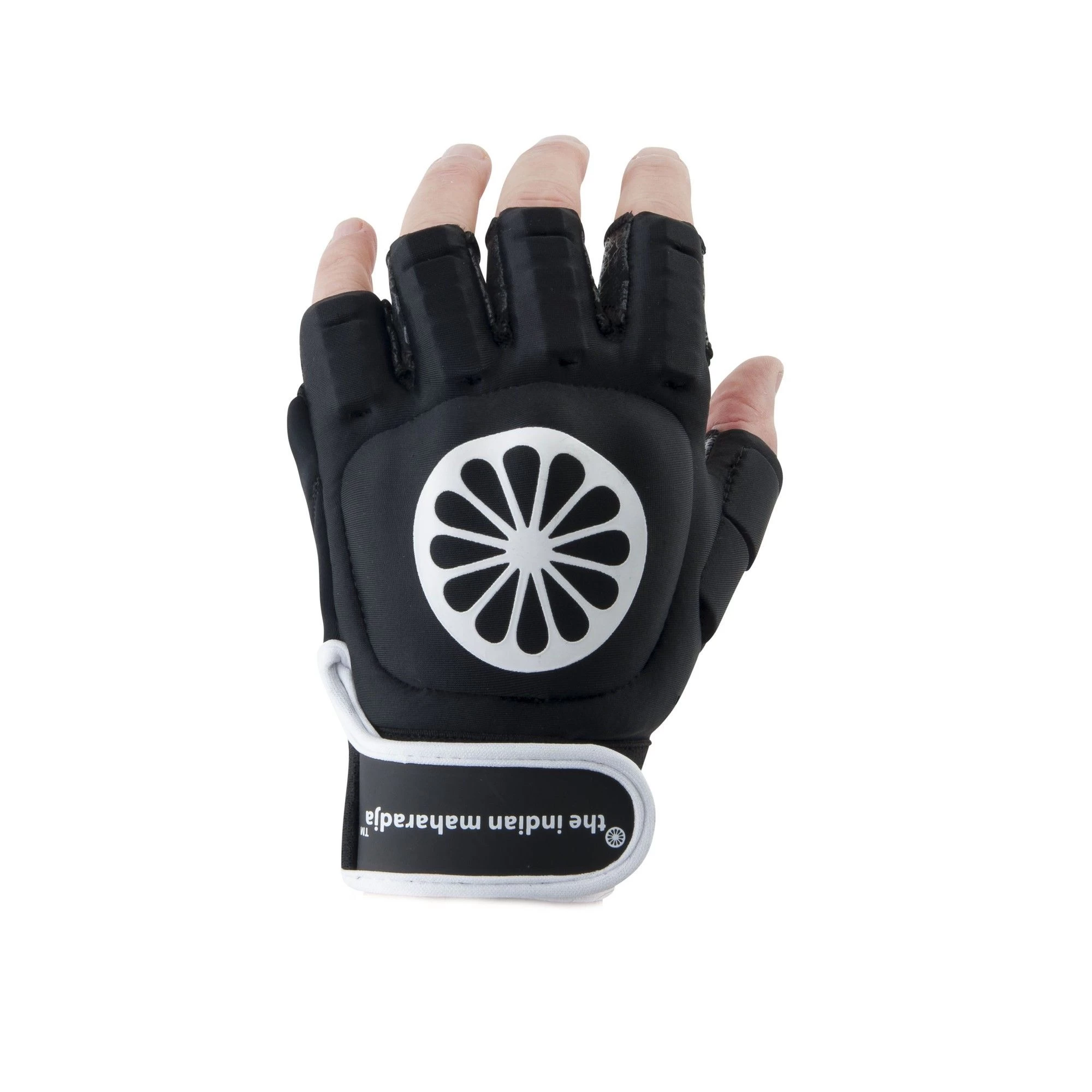 De glove shell half left hockeyhandschoen black van The Indian Maharadja is gemaakt in een perfecte pasvorm. De handschoen zorgt voor optimale bescherming tijdens het hockeyen. De halve vingers en open handpalm zorgen voor voldoende grip met de stick.