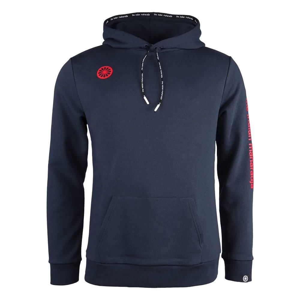 De The Indian Maharadja hooded stretch hockeytrui heren navy is een zachte trui met lange mouwen. De The Indian Maharadja trui heeft een vaste capuchon met trekkoord. Op de buik heeft de trui een grote zak.